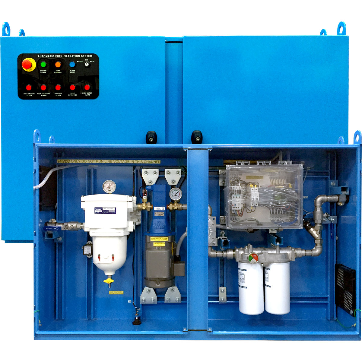 The key to ensuring optimal fuel quality requires the removal and prevention of fuel contamination through filtration, the separation and removal of both free and emulsified water, and the conditioning of fuel to reduce the size of particulate clusters. All of these processes together, configured in a kidney loop fashion to maximize the amount of fuel being polished, is exceptionally executed utilizing an AXI Intelligent Fuel Management System.The STS 6010 Intelligent Fuel Management System is an enclosed system designed to optimize and maintain diesel fuel indefinitely. Our innovative fuel polishing process stabilizes diesel and bio-fuels, eliminates microbial contamination, and ensures clean reliable fuel at all times. Ideal applications for STS 6010 systems include main power generators, standby/emergency backup generators, and bulk fuel storage.