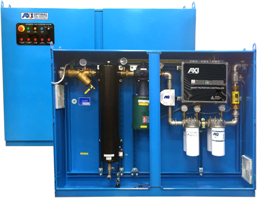 The key to ensuring optimal fuel quality requires the removal and prevention of fuel contamination through filtration, the separation and removal of both free and emulsified water, and the conditioning of fuel to reduce the size of particulate clusters. All of these processes together, configured in a kidney loop fashion to maximize the amount of fuel being polished, is exceptionally executed utilizing an AXI Intelligent Fuel Management System.